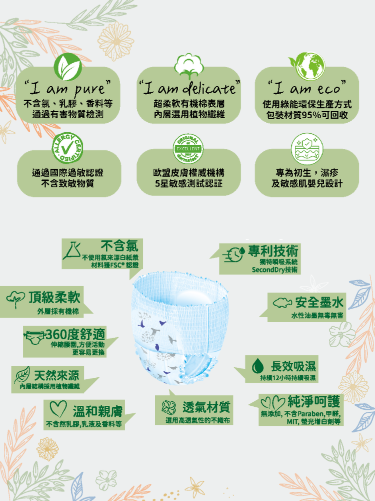 給寶寶最天然的守護 Moltex 歐洲頂級純天然透氣學習褲專為嬰幼兒脆弱肌膚設計,讓每一次貼合都舒適自在。 -3款不同尺寸,滿足各階段寶寶需求 -高透氣不織布,保持乾爽不悶熱 ,減少尿布疹風險 -360° 舒適彈性腰圍,自由伸縮,方便活動,更容易更換 -專利SecondDry技術,獨特瞬吸系統,快速鎖水 -持續12小時吸濕,夜晚安心不打擾 -100% 無添加香料 & 化學漂白 -環保材質,守護地球同時守護寶寶 -歐洲製造,歐洲品質保證 -通過國際過敏認證及歐盟皮膚權威機構 5星敏感測試認証 給寶寶最安心的呵護,從選擇開始! 選擇 MOLTEX,天然安心,讓寶寶自在成長,爸媽更放心!