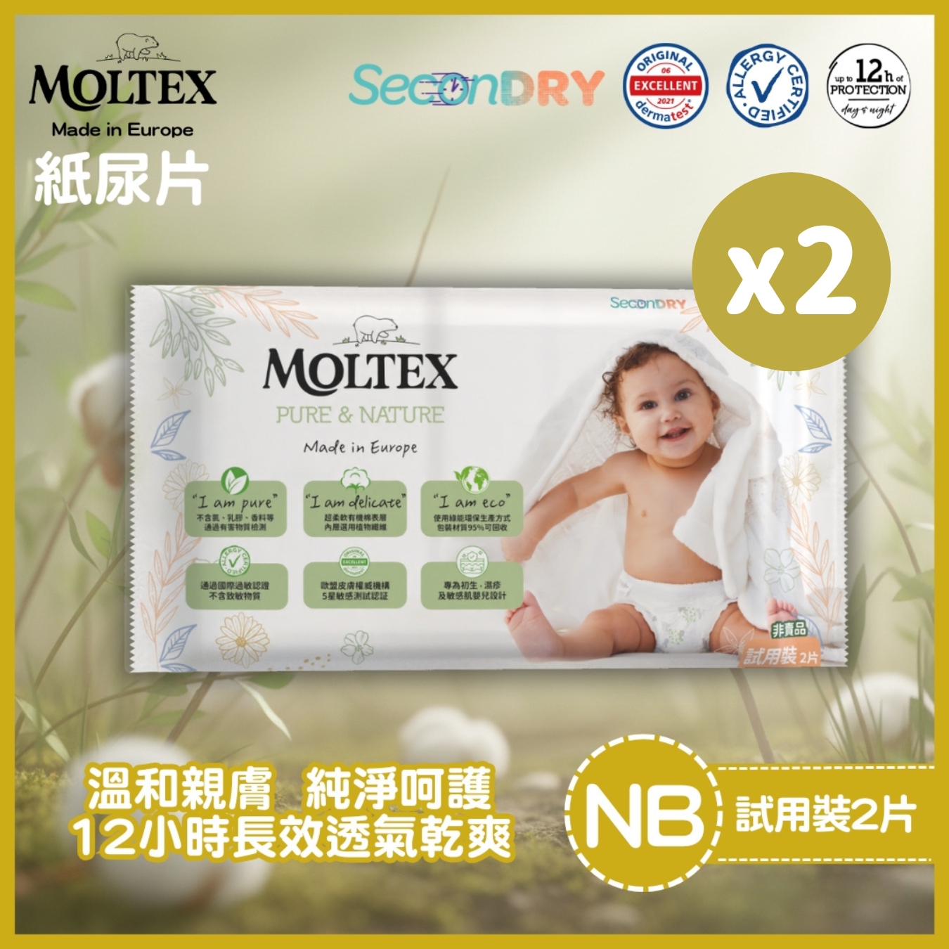 MOLTEX - 歐洲頂級純天然透氣紙尿片試用裝(NB-2片)x2件_MT001G2